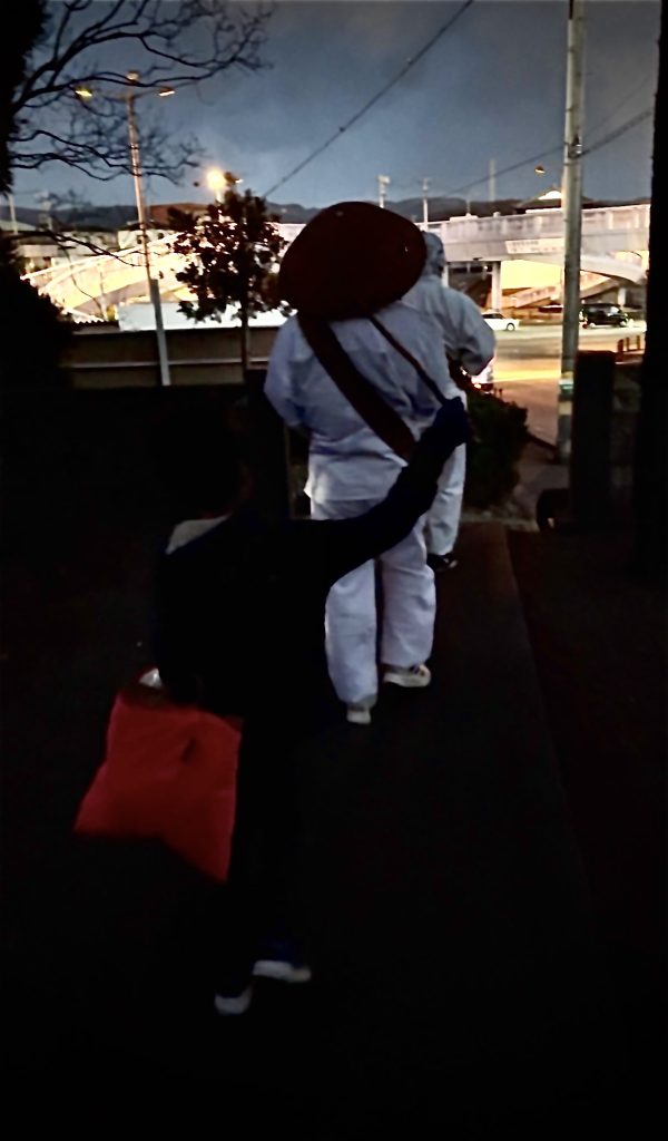 太鼓を叩きながら約2時間、近所を回らせていただく寒修行の季節。