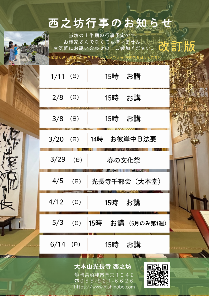 令和8年の上半期予定をお知らせいたしますのでご参考ください。